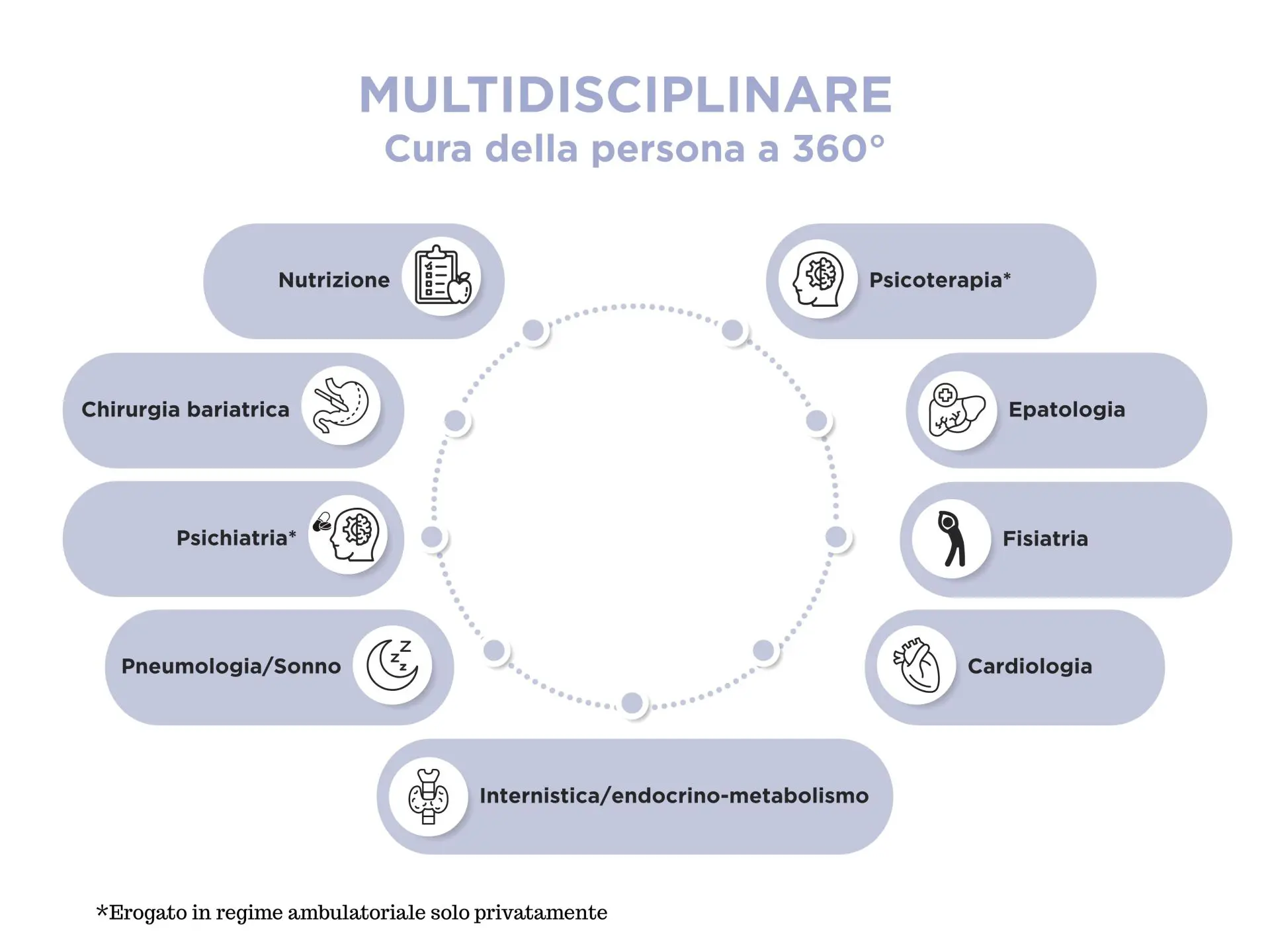 - una presa in carico personalizzata delle persone con obesità, sovrappeso o altre malattie della nutrizione, mirata alla gestione del peso e alla cura degli aspetti a questo correlati e finalizzata all’ottenimento dei massimi benefici per ogni singolo paziente