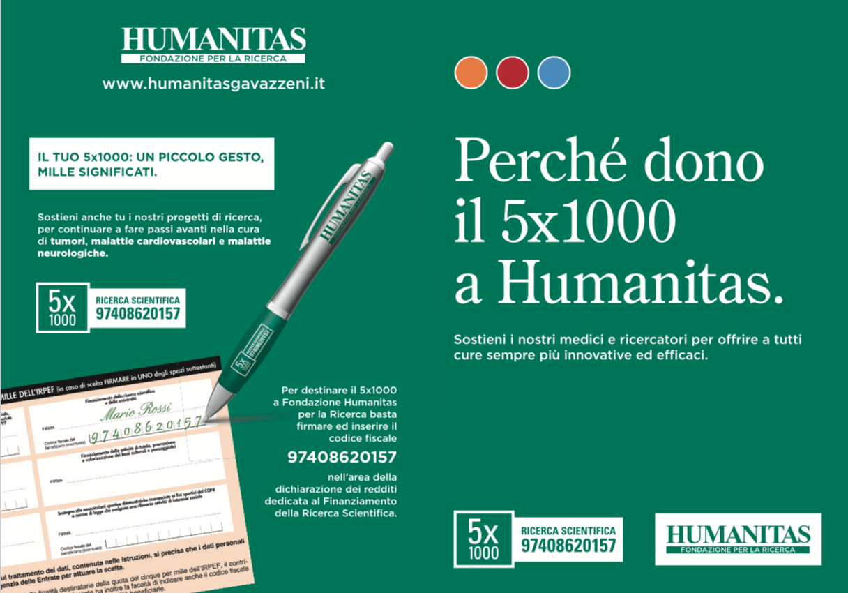 Grazie al vostro 5×1000 alla Ricerca Scientifica di Humanitas potremo sviluppare i nostri studi, offrire a sempre più pazienti i nostri programmi di Ricerca che si trasformeranno poi in Cura e incentivare i giovani medici a intraprendere questo percorso.
