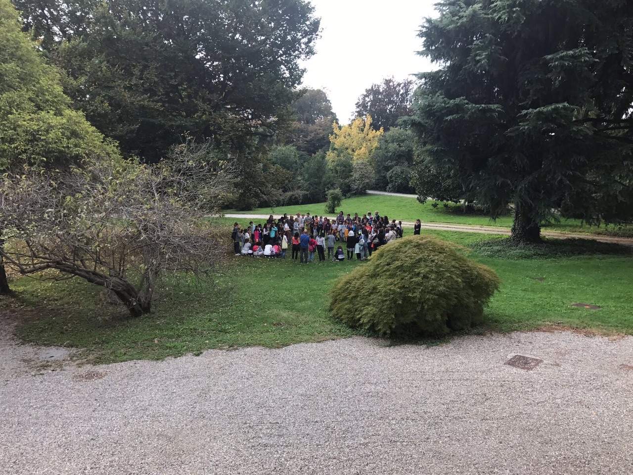 Maura Gavazzeni, responsabile dei volontari Elios dell’ospedale, e l’agronomo Luciano Riva hanno accompagnato le cinque classi della scuola elementare don Bosco di Bergamo, due quarte e tre quinte, tra le imponenti e maestose piante secolari del parco di Humanitas Gavazzeni.