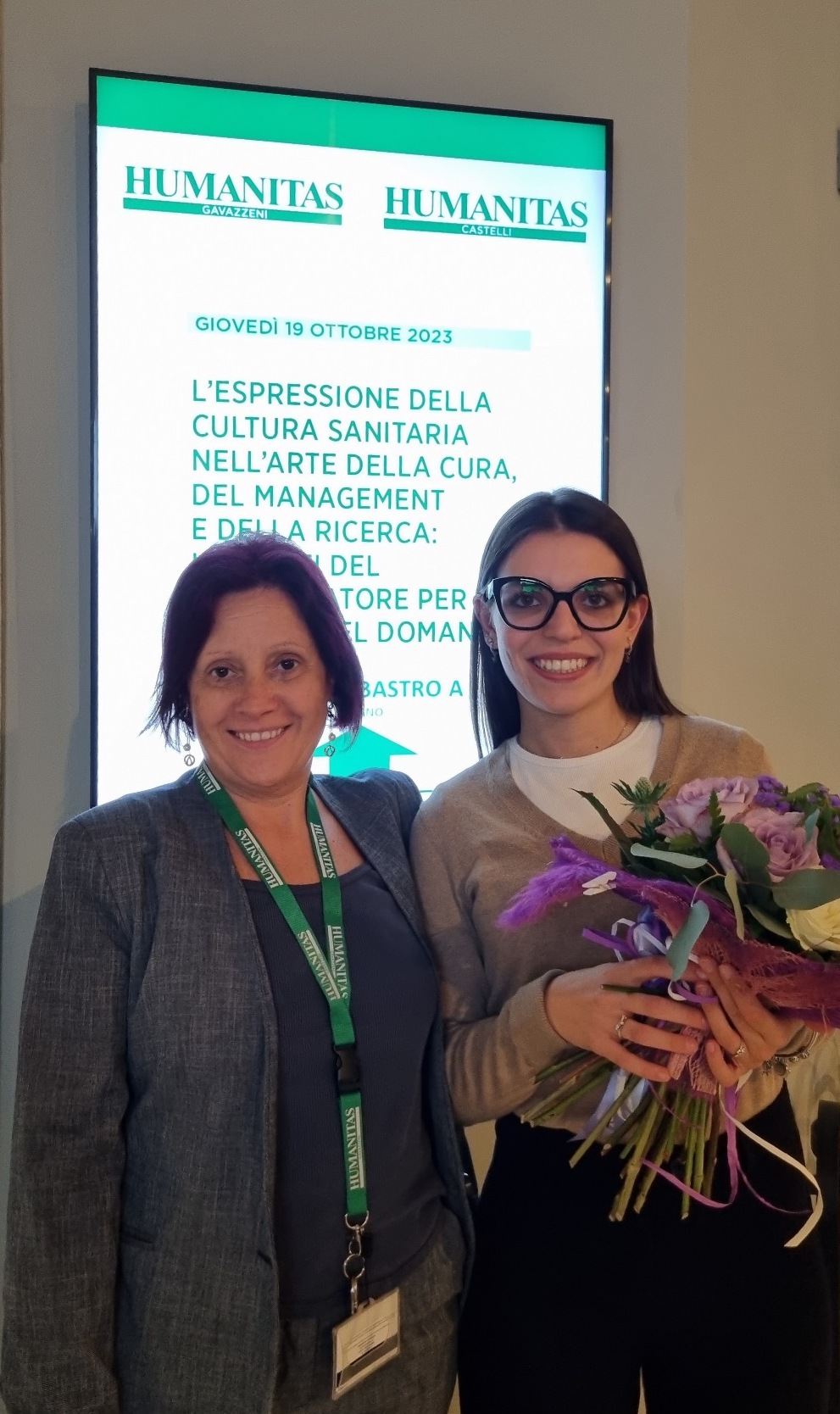 Nella foto la direttrice delle Professioni sanitarie di Humanitas Gavazzeni e Castelli, Katia Morstabilini, con la vincitrice del Premio “Cinzia Bano” 2023, Giorgia Rizzi.