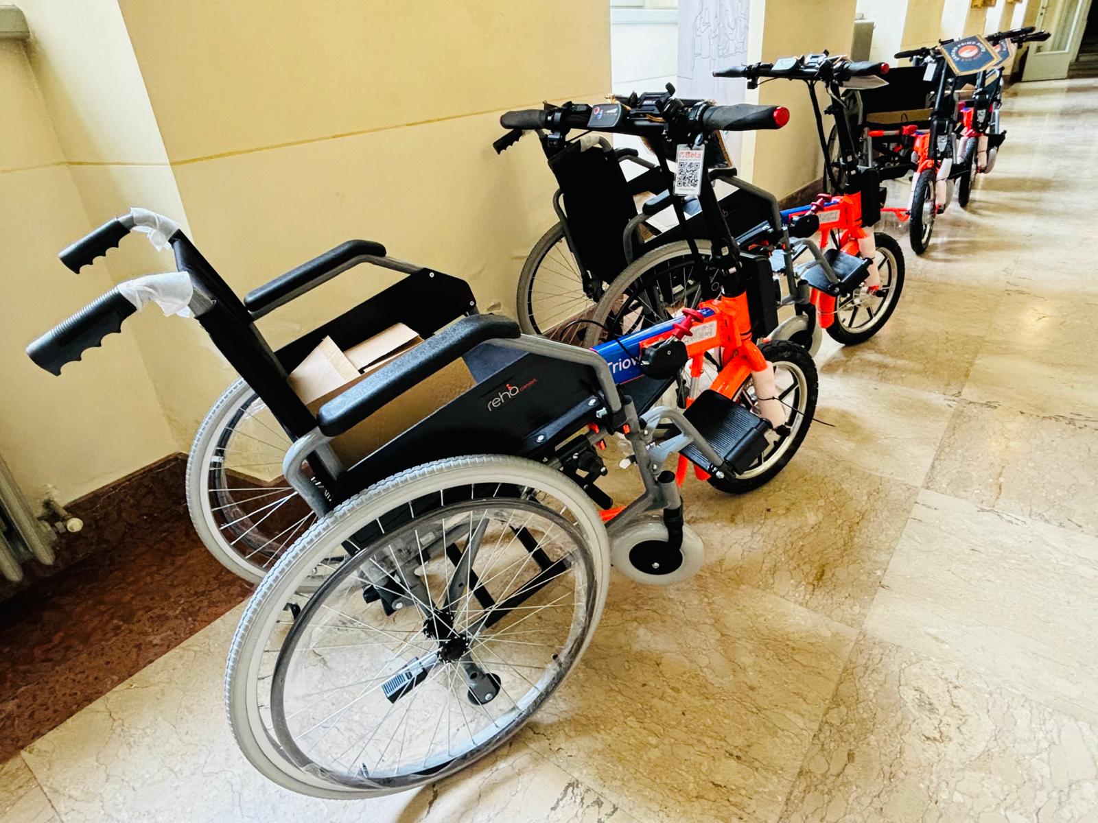Si tratta di carrozzine modello Trioway, costruite con un sistema innovativo che permette di motorizzare al bisogno e in modalità intercambiabile le carrozzine standard usate normalmente dalle persone disabili. La finalità di questi presidi, ergonomici e di facile manovrabilità, è quella di offrire il massimo supporto e autonomia ai pazienti che si trovano in condizione di ridotta mobilità, migliorando sensibilmente la loro qualità di vita.