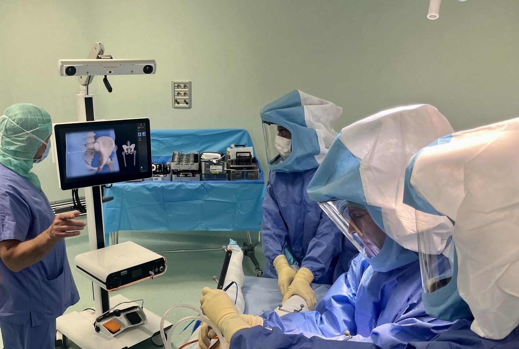 La “navigazione” robotica si affianca al chirurgo ortopedico prima e durante l’intervento. Si concentra in particolare nella pianificazione dell’intervento di protesica d’anca e nella sua precisa riproduzione in sala operatoria.