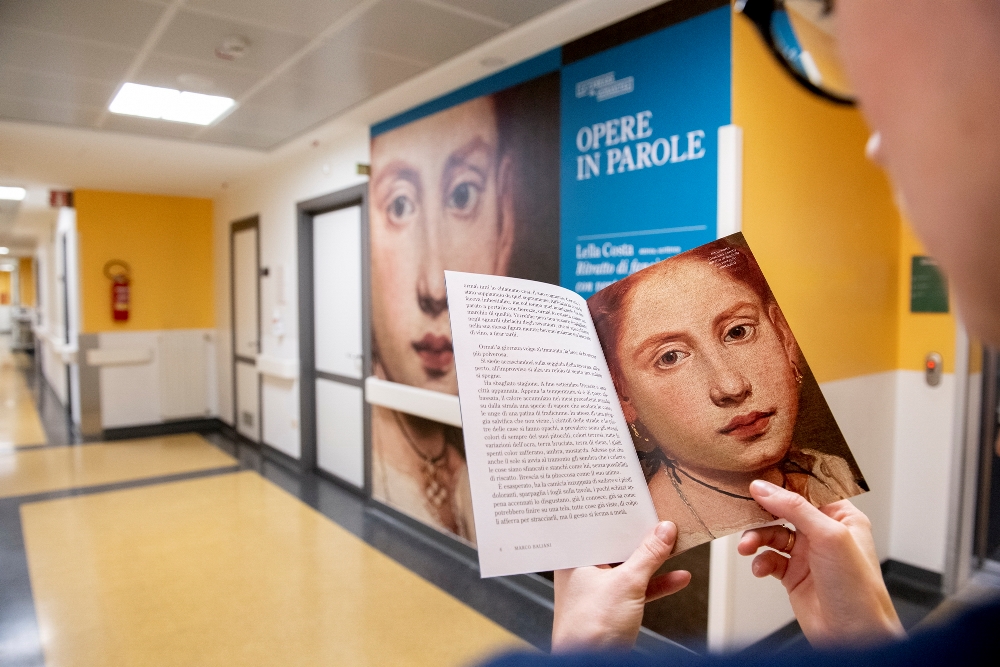 Opere in parole è un esperimento unico in Italia, un inedito connubio tra arte e salute: dal 2018 i capolavori della Pinacoteca Accademia Carrara, riprodotti in maxi formato, adornano per oltre 1200 metri quadrati di arte le pareti delle sale d’attesa e dei reparti di Humanitas Gavazzeni e Humanitas Castelli di Bergamo, e, dal 2020, sono accompagnati dalle parole e dalle voci di undici autori della cultura italiana attraverso racconti, ricette, spartiti musicali e fumetti ispirati ai dipinti e dedicati ai pazienti e agli operatori sanitari.